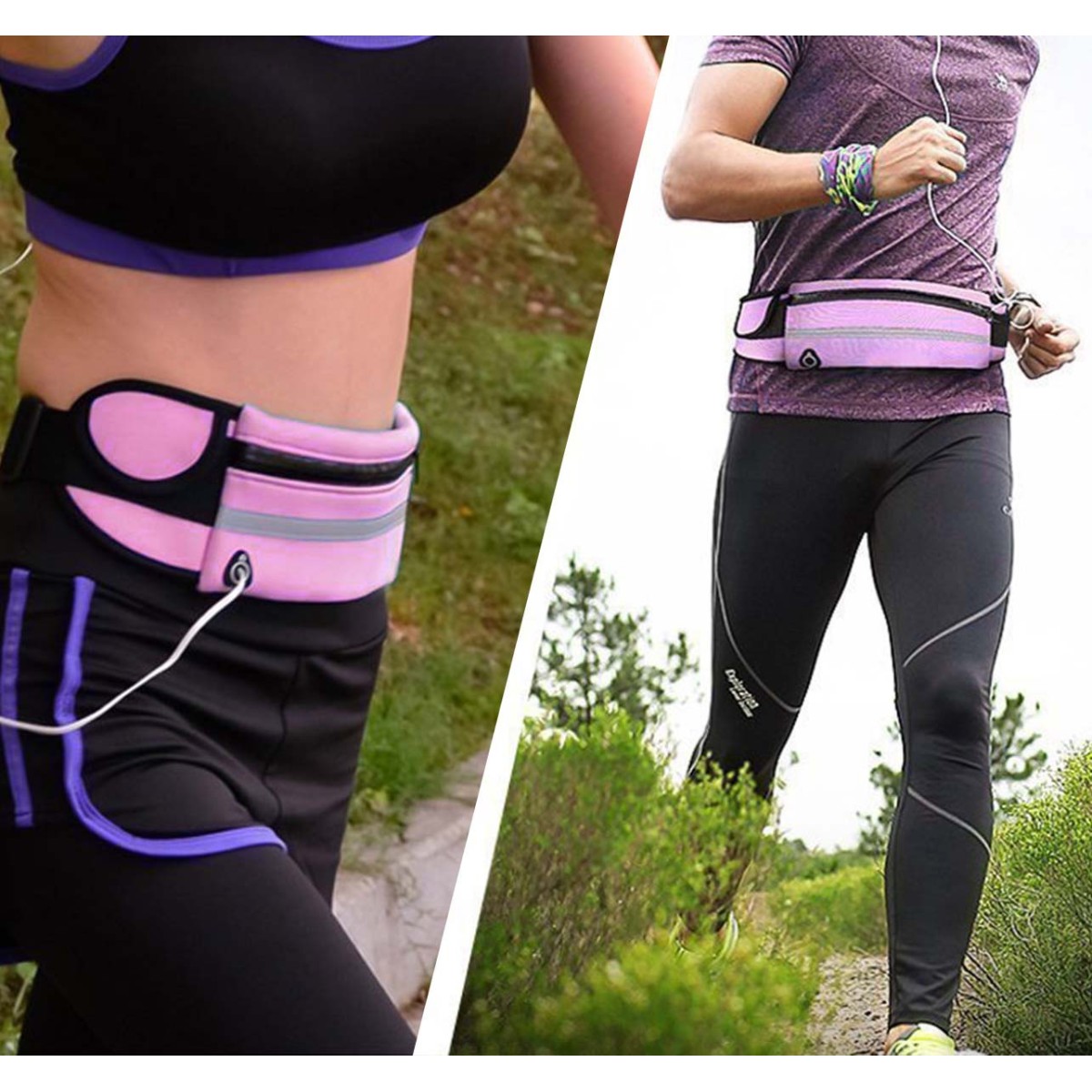 Cinturón cómodo y funcional color Rosa con bolsillo espacioso y soporte para botellas.