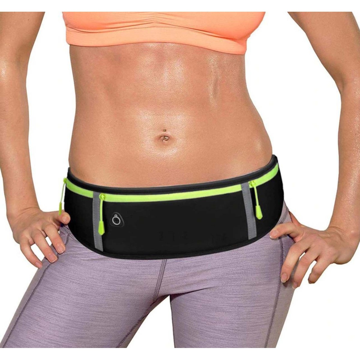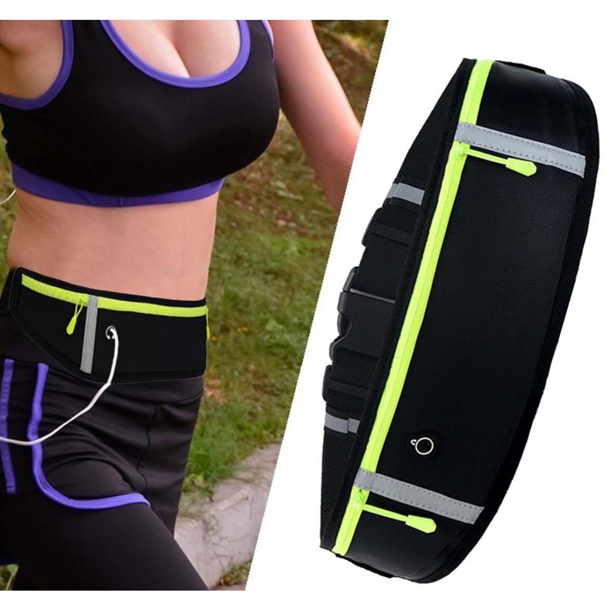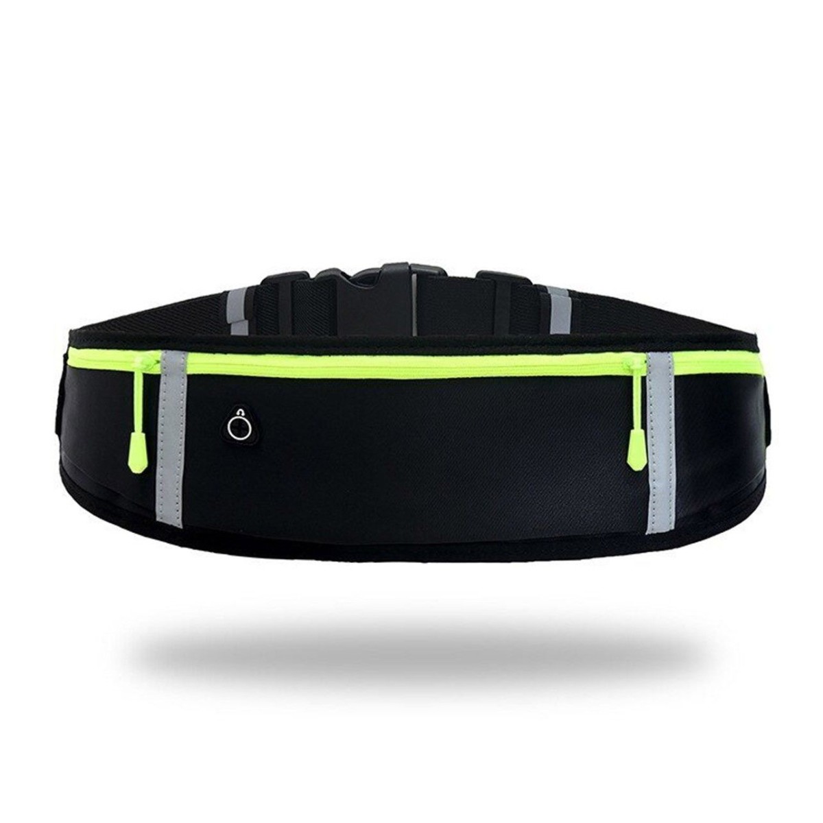 Cinturón Riñonera para correr color Negro, reflectante con puerto para auriculares.