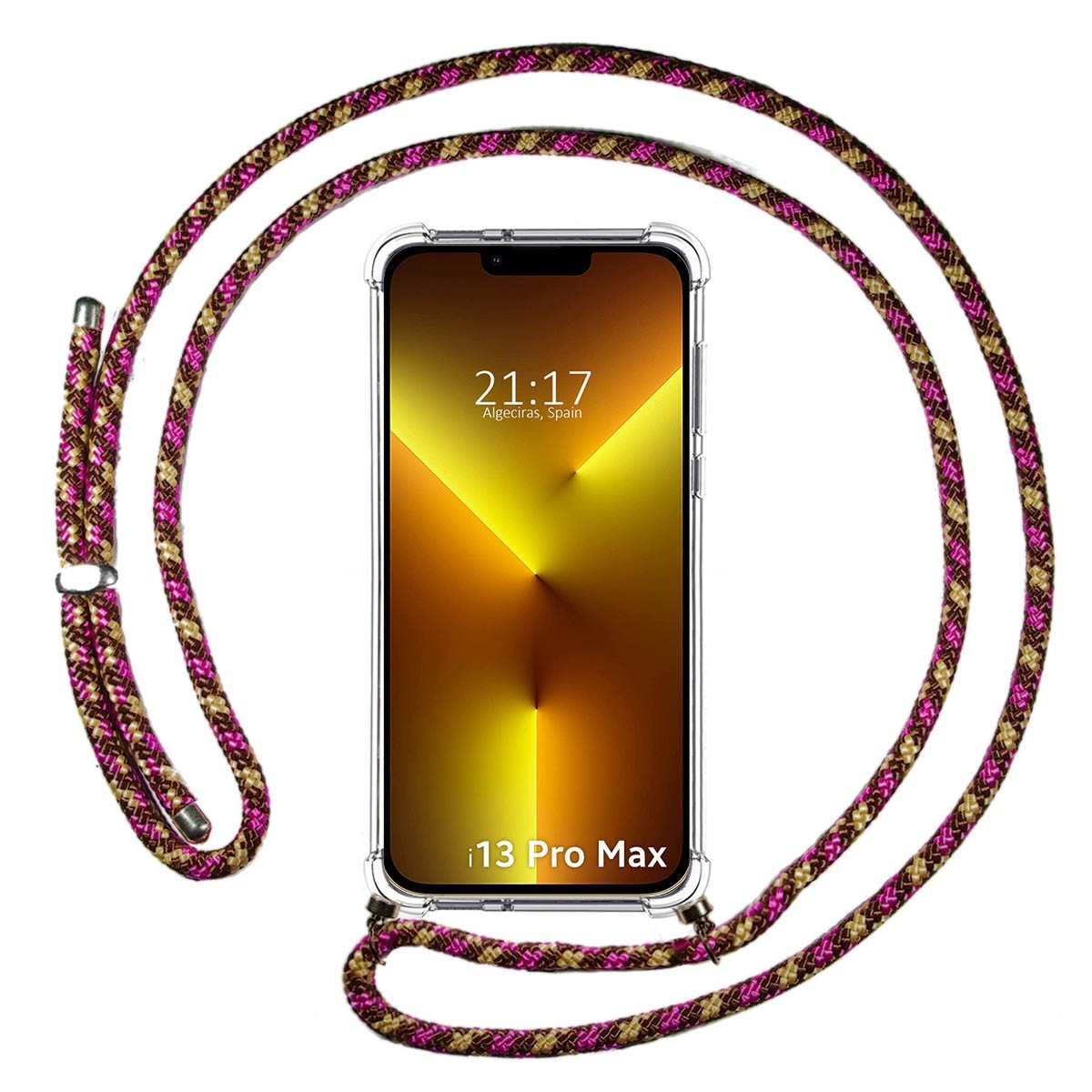 Funda Colgante Transparente compatible con Iphone 13 Pro Max (6.7) con Cordon Rosa / Dorado