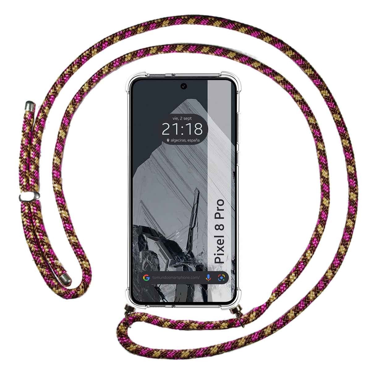 Funda Colgante Transparente para Google Pixel 8 Pro 5G con Cordon Rosa / Dorado