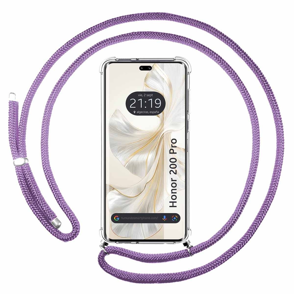 Funda Colgante Transparente para Huawei Honor 200 Pro 5G con Cordon Morado