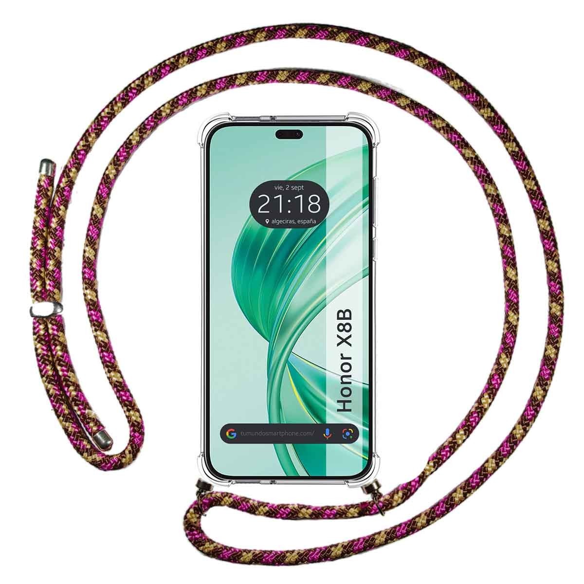 Funda Colgante Transparente para Huawei Honor X8b con Cordon Rosa / Dorado