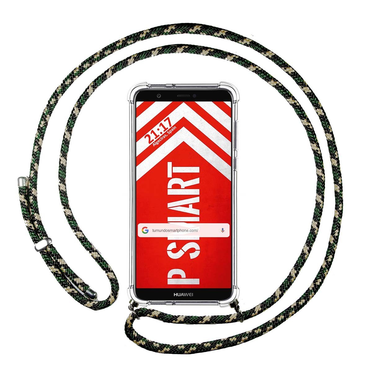 Funda anti-shock Transparente para Huawei P Smart con Cordon color Verde / Dorado.