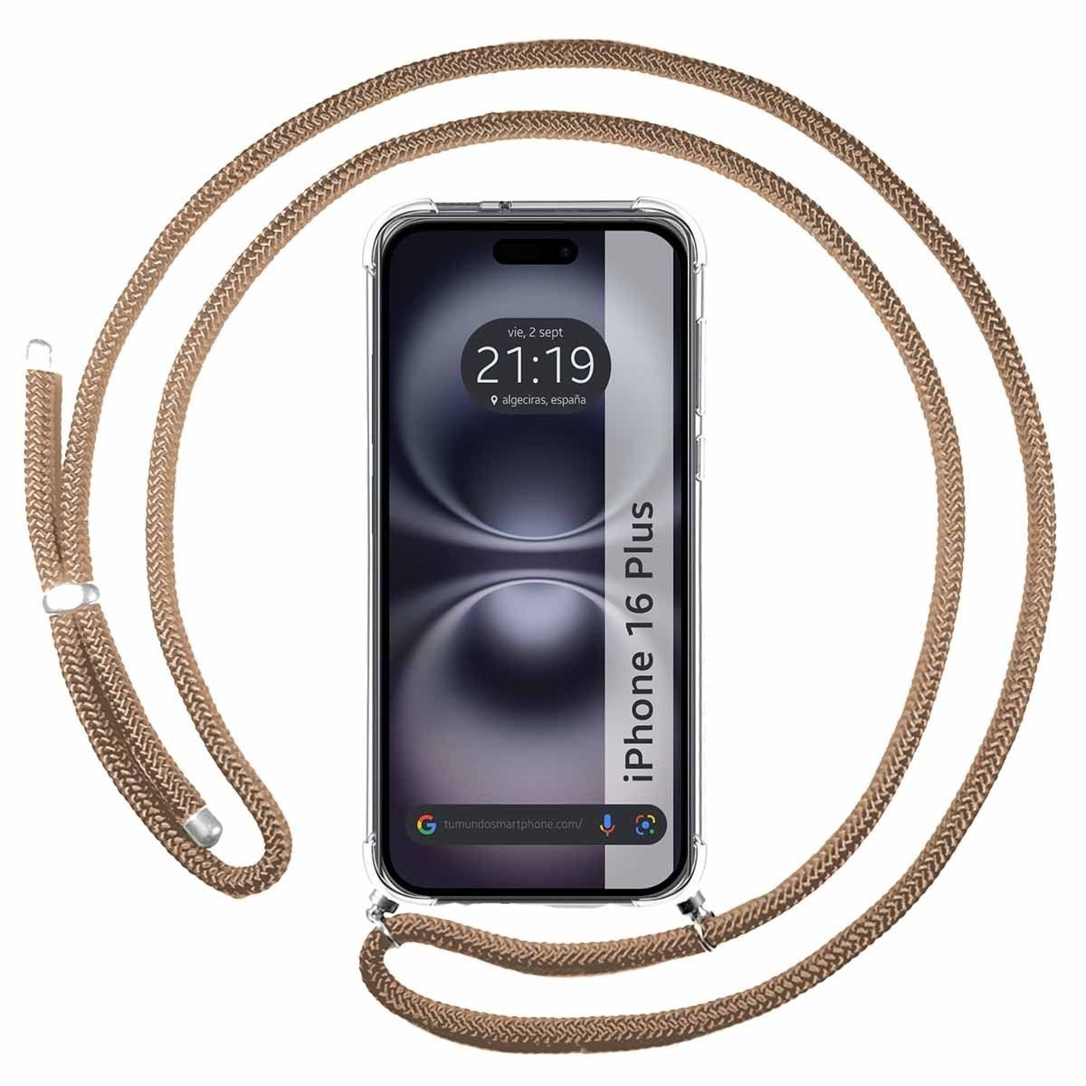 Funda Colgante Transparente para Iphone 16 (6.1) con Cordon Rosa / Dorado