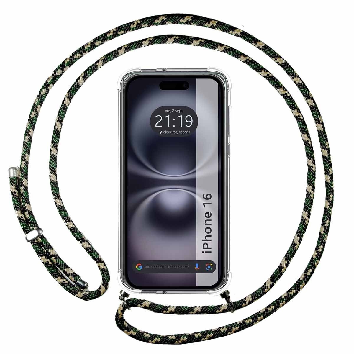 Funda Colgante Transparente para Iphone 16 (6.1) con Cordon Verde / Dorado