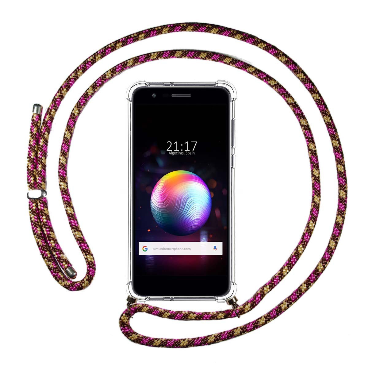 Funda anti-shock Transparente para Lg K11 con Cordon color Rosa / Dorado.