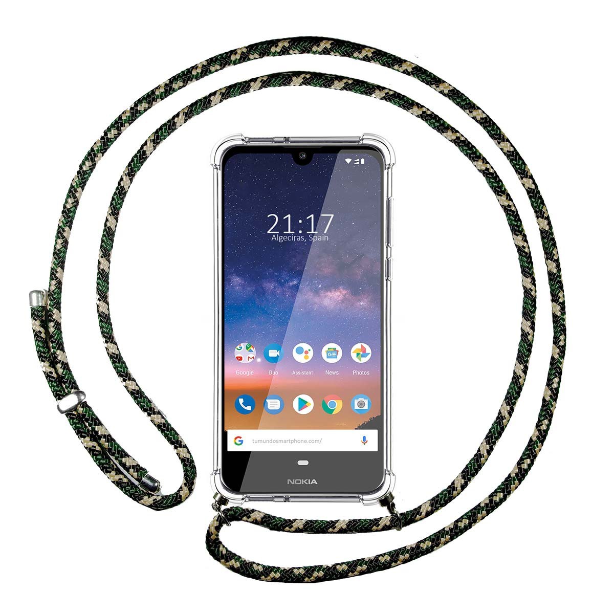 Funda anti-shock Transparente para Nokia 2.2 con Cordon color Verde / Dorado.