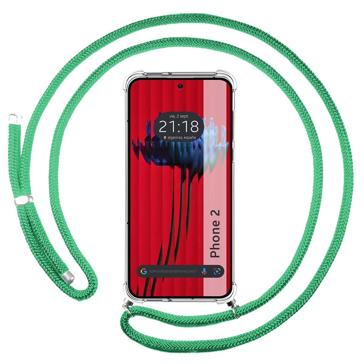 Funda Colgante Transparente para Nothing Phone 2 5G con Cordon Verde Agua