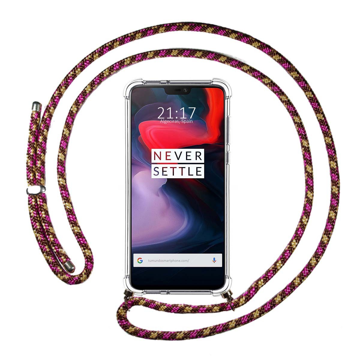 Funda anti-shock Transparente para Oneplus 6 con Cordon color Rosa / Dorado.