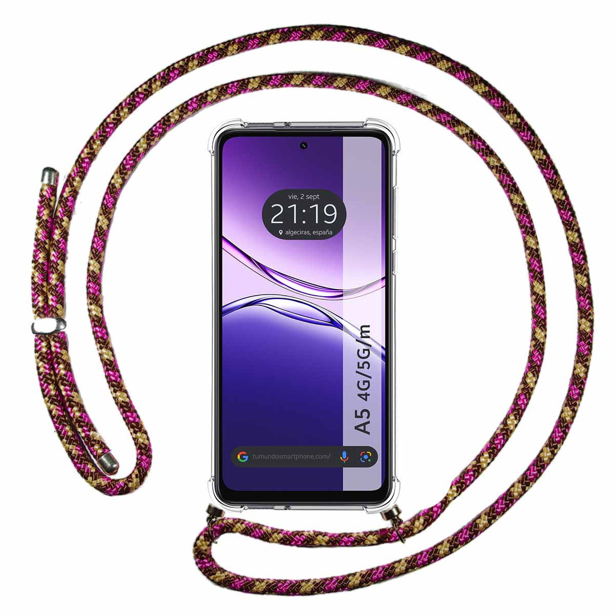 Funda Colgante Transparente para Oppo A5m / A5 4G / 5G con Cordon Rosa / Dorado