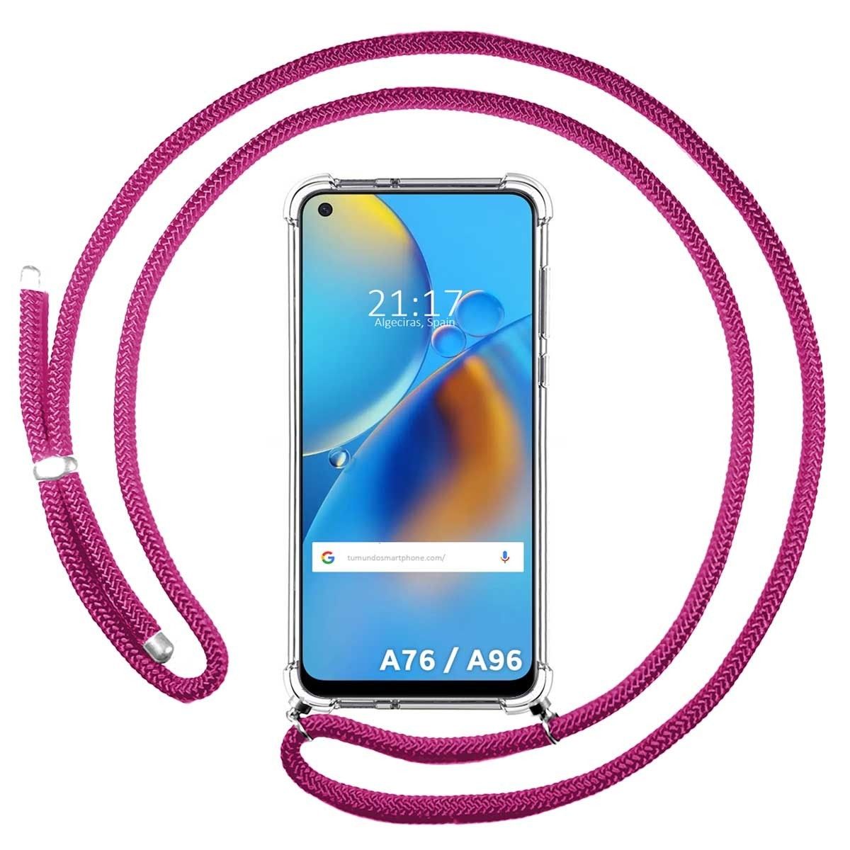 Funda Colgante Transparente para Oppo A76 / A96 con Cordon Rosa Fucsia