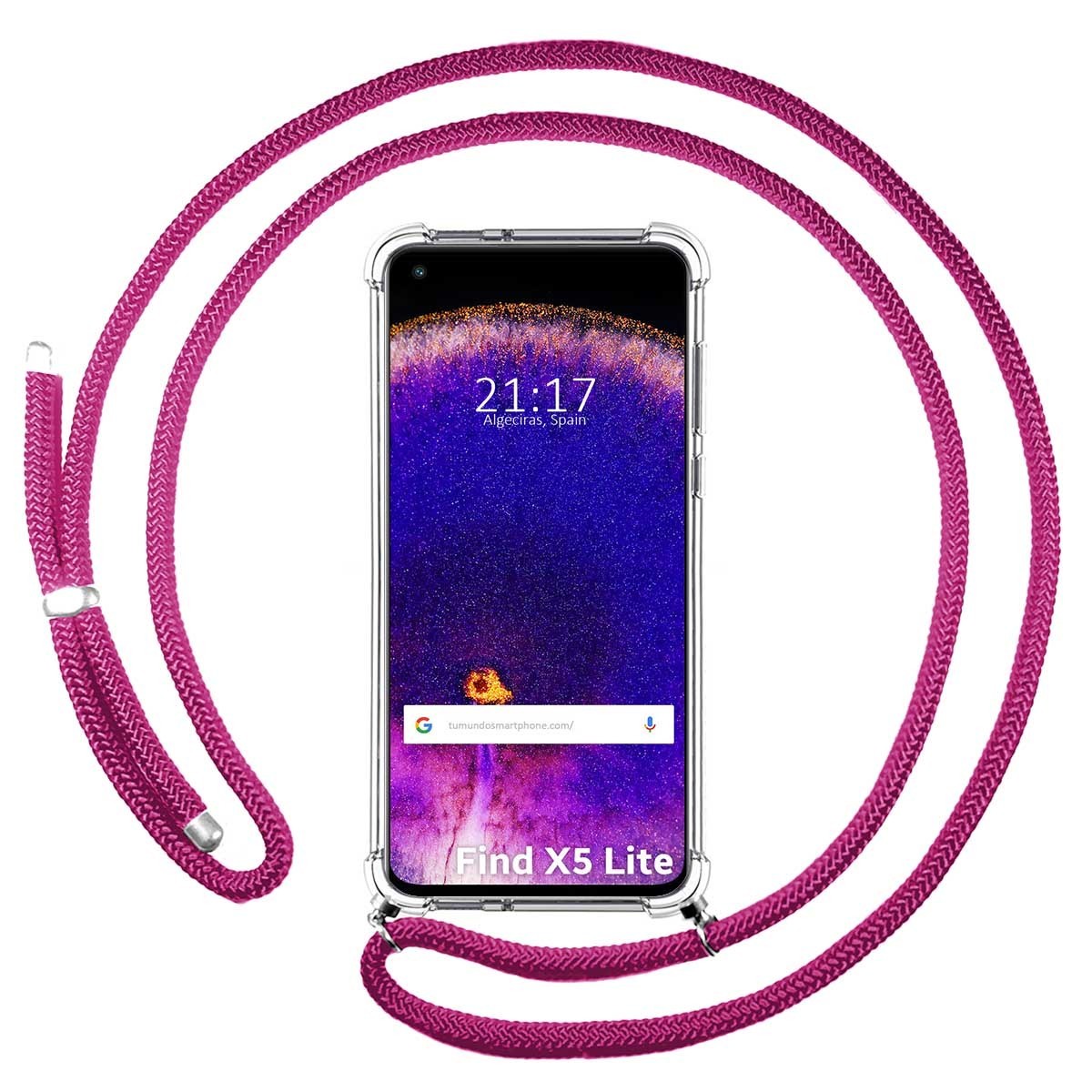 Funda Colgante Transparente para Oppo Find X5 Lite 5G con Cordon Rosa Fucsia