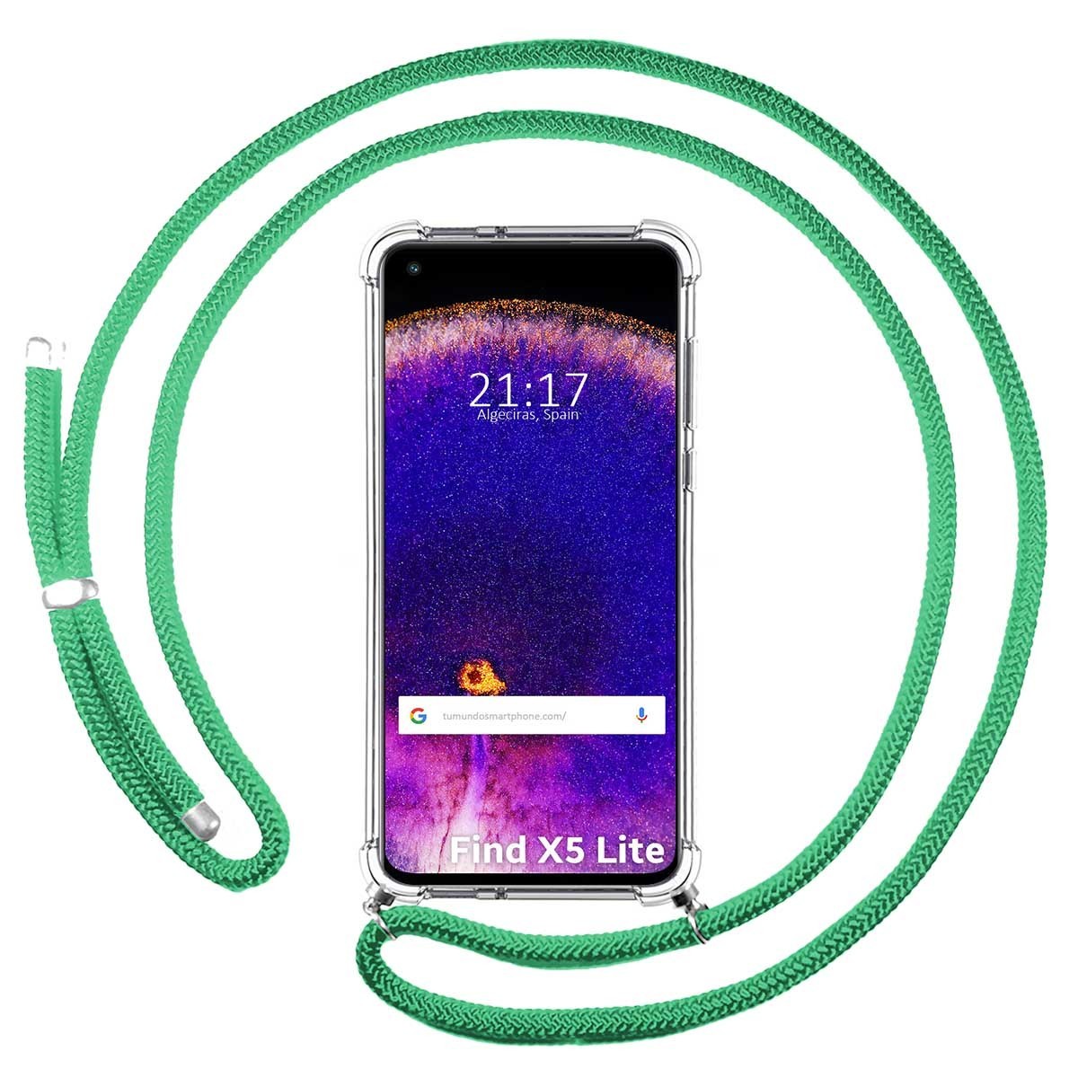 Funda Colgante Transparente para Oppo Find X5 Lite 5G con Cordon Verde Agua