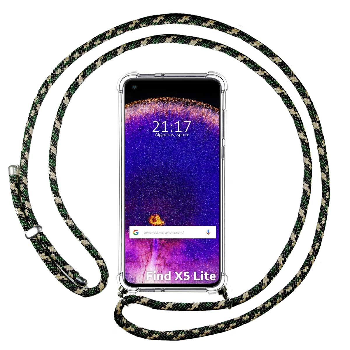 Funda Colgante Transparente para Oppo Find X5 Lite 5G con Cordon Verde / Dorado