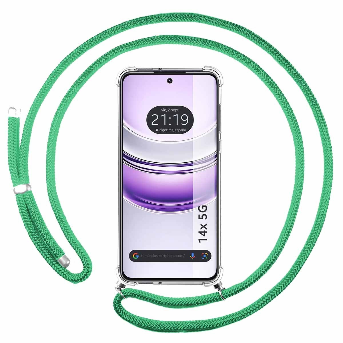 Funda Colgante Transparente para Realme 14x 5G con Cordon Verde Agua