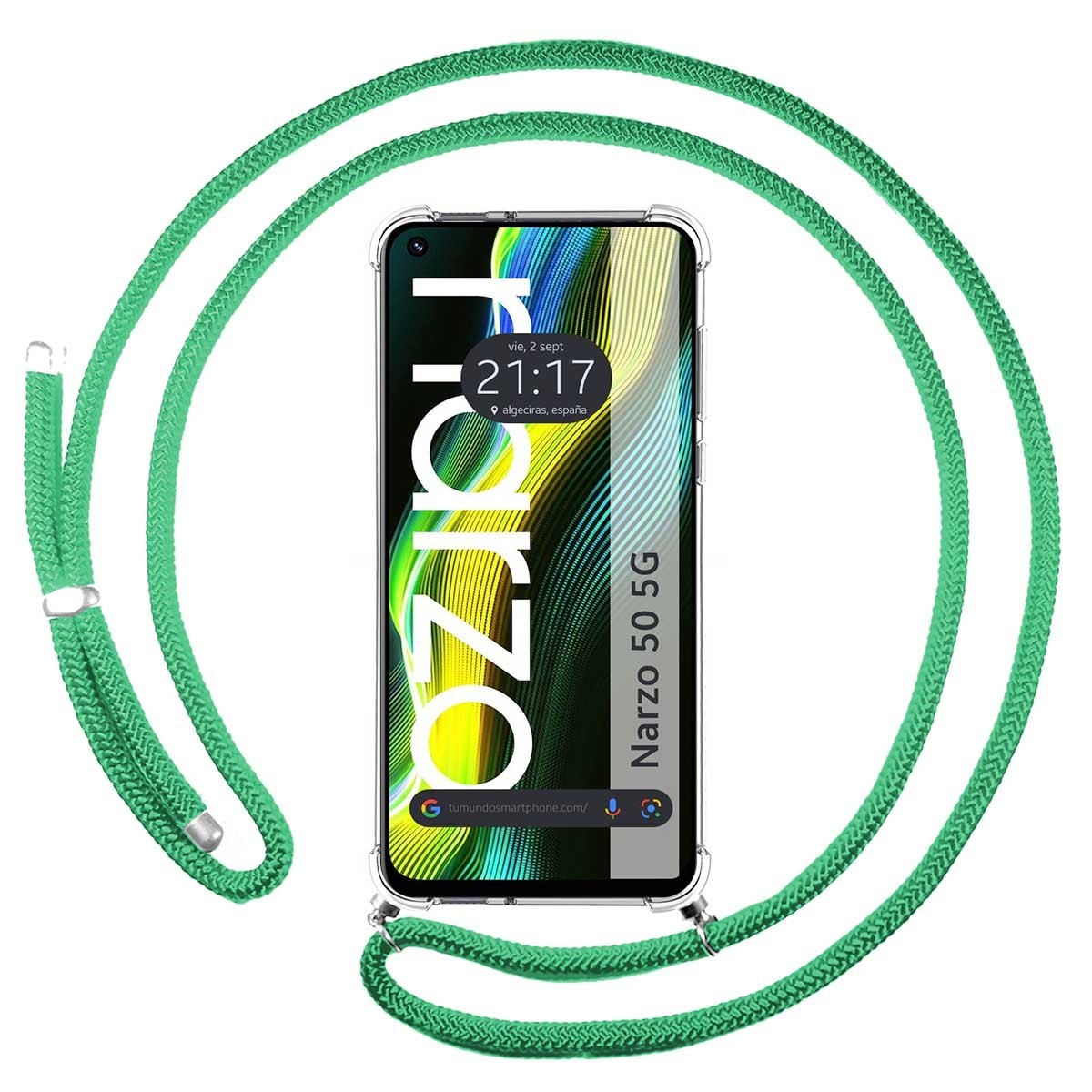 Funda Colgante Transparente para Realme Narzo 50 5G con Cordon Verde Agua
