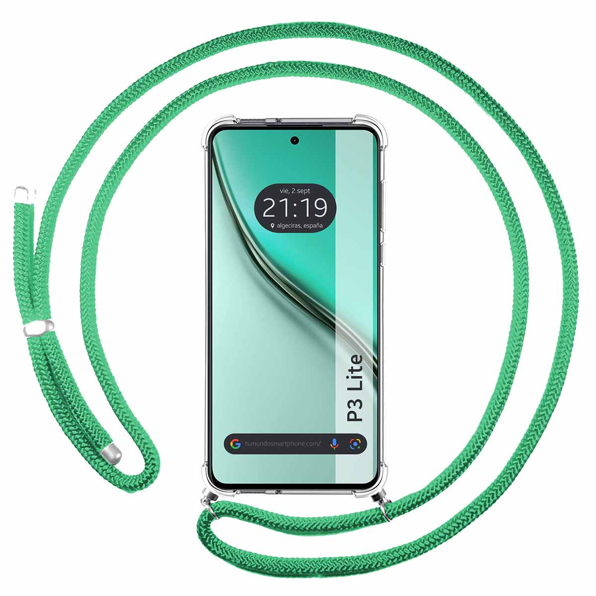 Funda Colgante Transparente para Realme P3 lite con Cordon Verde Agua