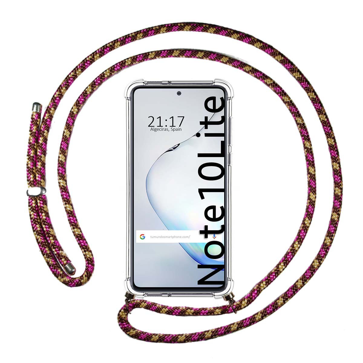 Funda Colgante Transparente para Samsung Galaxy Note 10 Lite con Cordon Rosa / Dorado