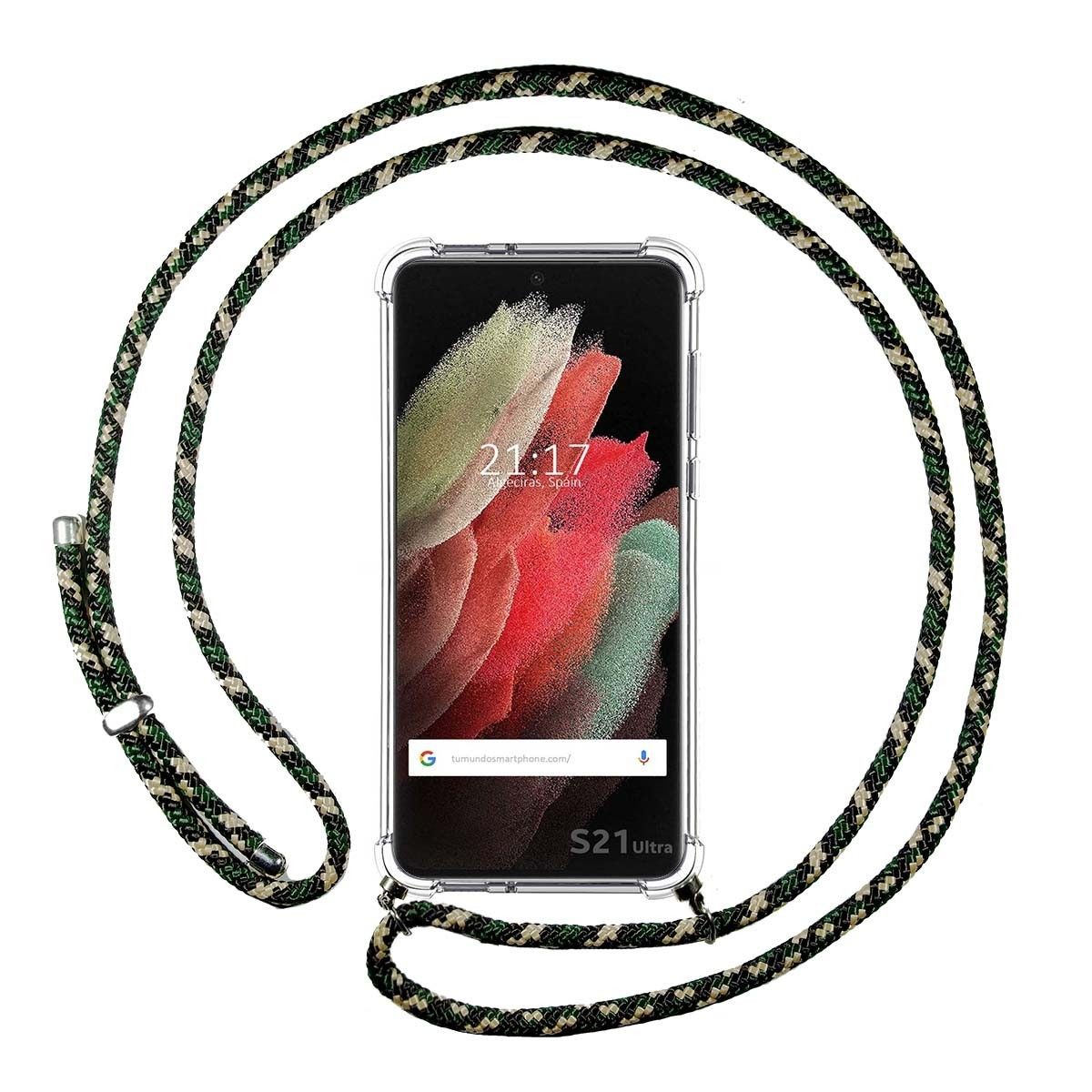 Funda Colgante Transparente para Samsung Galaxy S21 Ultra 5G con Cordon Verde / Dorado
