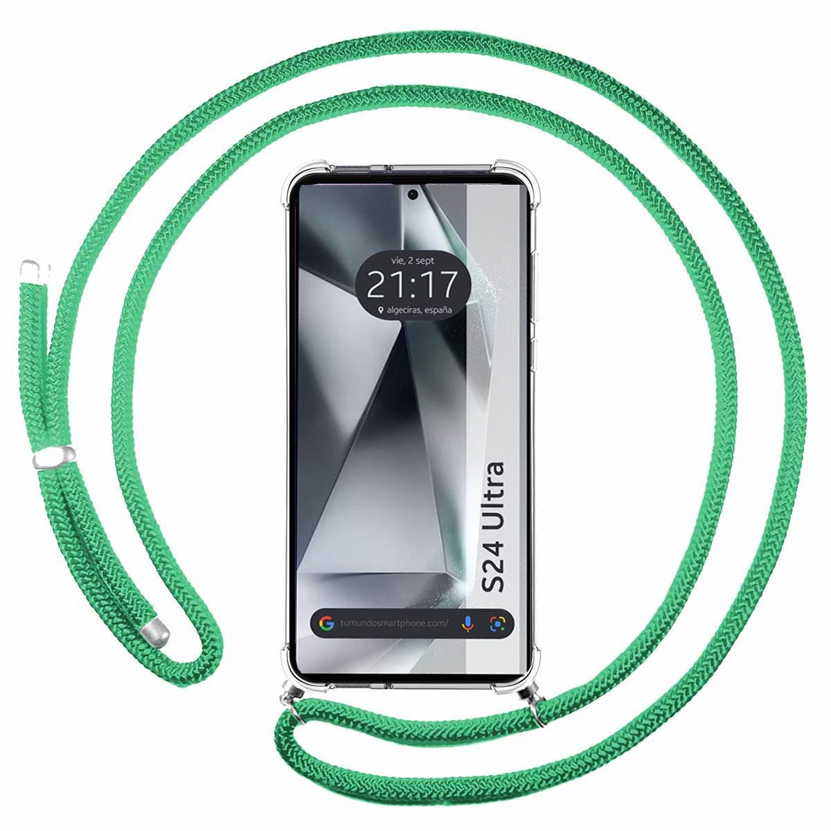 Funda Colgante Transparente para Samsung Galaxy S24 Ultra 5G con Cordon Verde Agua