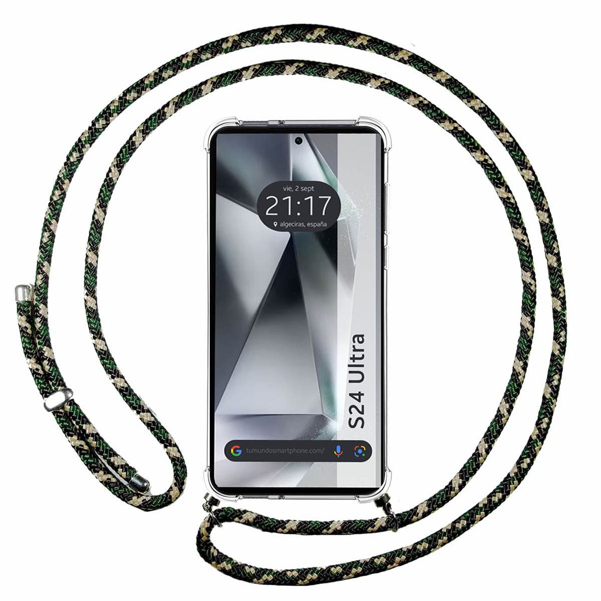 Funda Colgante Transparente para Samsung Galaxy S24 Ultra 5G con Cordon Verde / Dorado