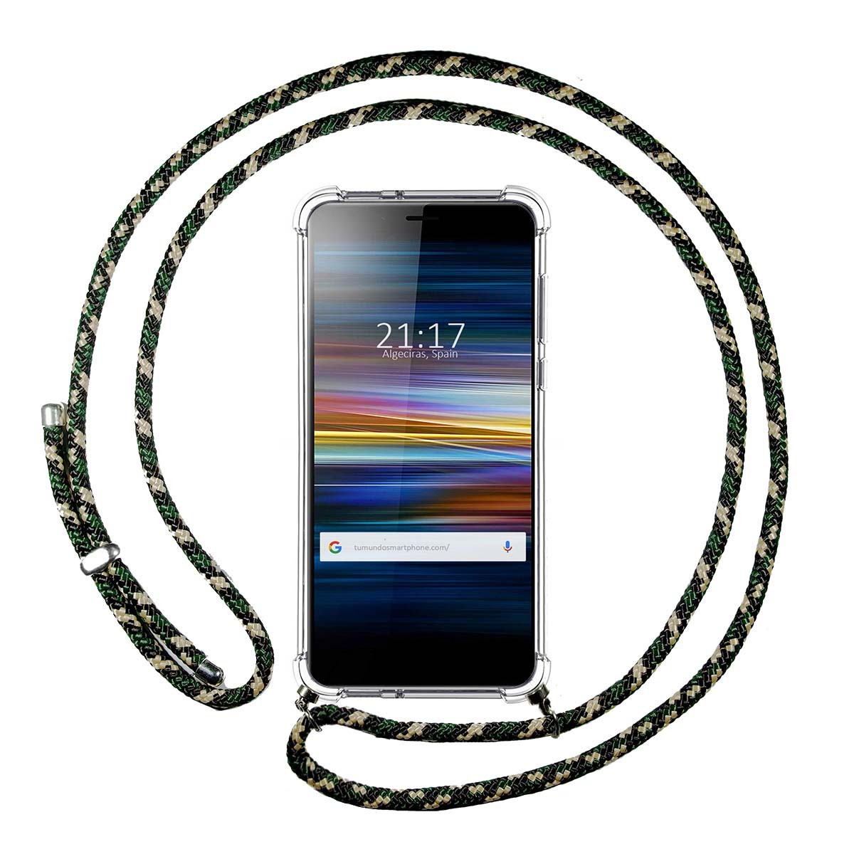 Funda anti-shock Transparente para Sony Xperia L3 con Cordon color Verde / Dorado.