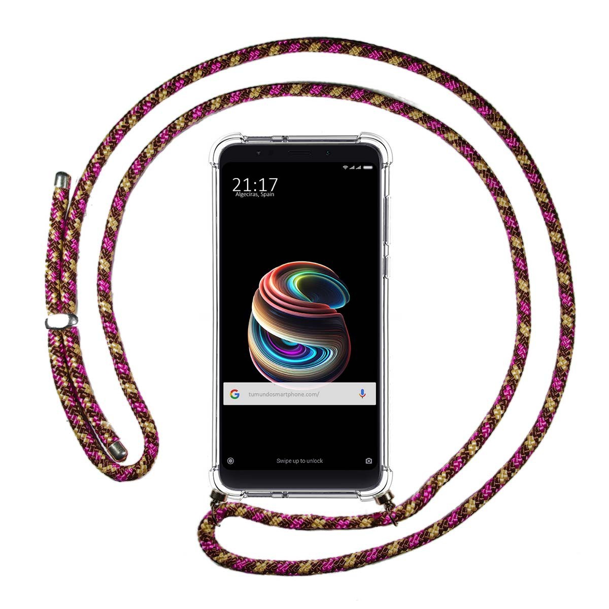 Funda Colgante Transparente para Xiaomi Mi 5S Plus con Cordon Rosa / Dorado
