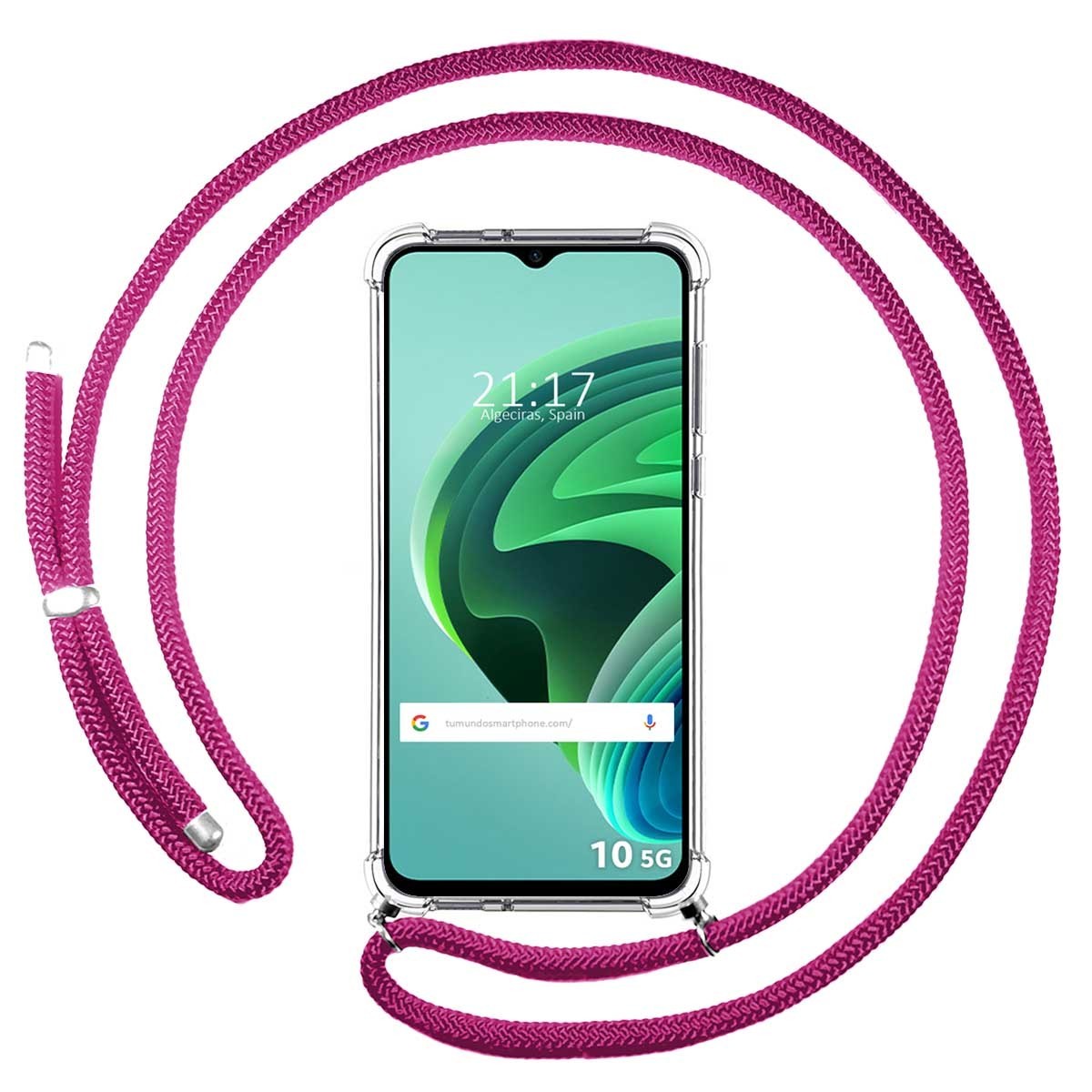 Funda Colgante Transparente para Xiaomi Redmi 10 5G con Cordon Rosa Fucsia