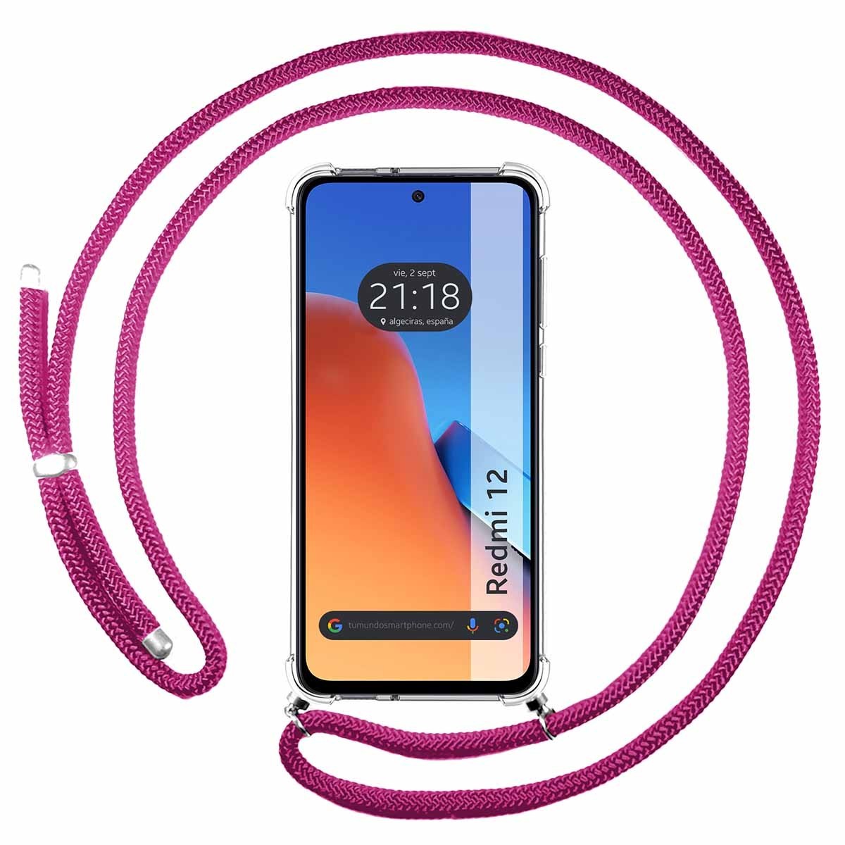Funda Colgante Transparente compatible con Xiaomi Redmi 12 con Cordon Rosa Fucsia