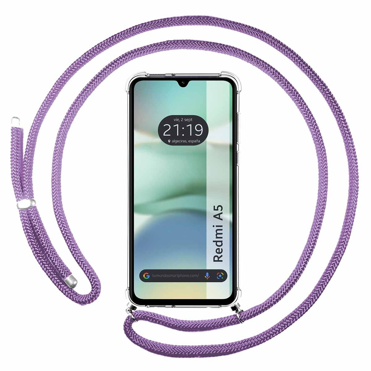 Funda Colgante Transparente para Xiaomi Redmi A5 con Cordon Morado