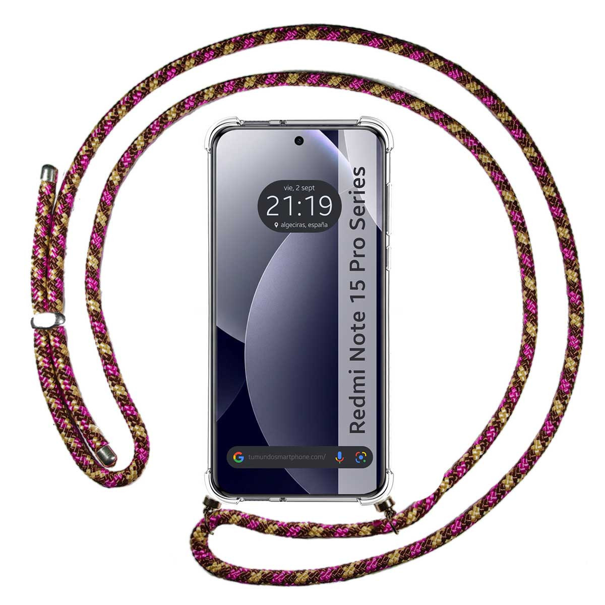Funda Colgante Transparente para Xiaomi Redmi Note 15 Pro+ Plus 5G con Cordon Rosa / Dorado