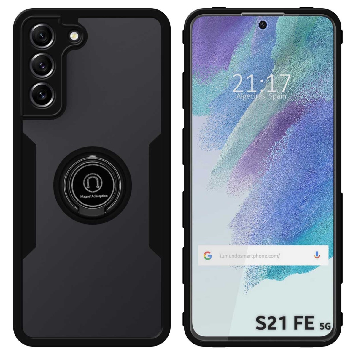 Funda Doble Negra Pc + Tpu Full Body 360 con Anillo para Samsung Galaxy S21 FE 5G