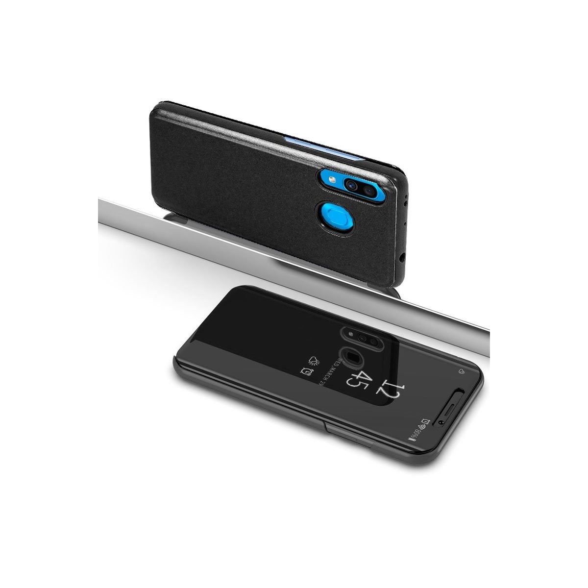 Funda protectora tipo libro y efecto espejo, muy elegante para Samsung Galaxy A20 / A30 color Negra. Esta funda a parte de su función propia de proteger el movil también se puede usar como soporte ofreciendo la posibilidad de mantener su dispositivo en horizontal para el visionado de peliculas, fotos, videos, etc.
