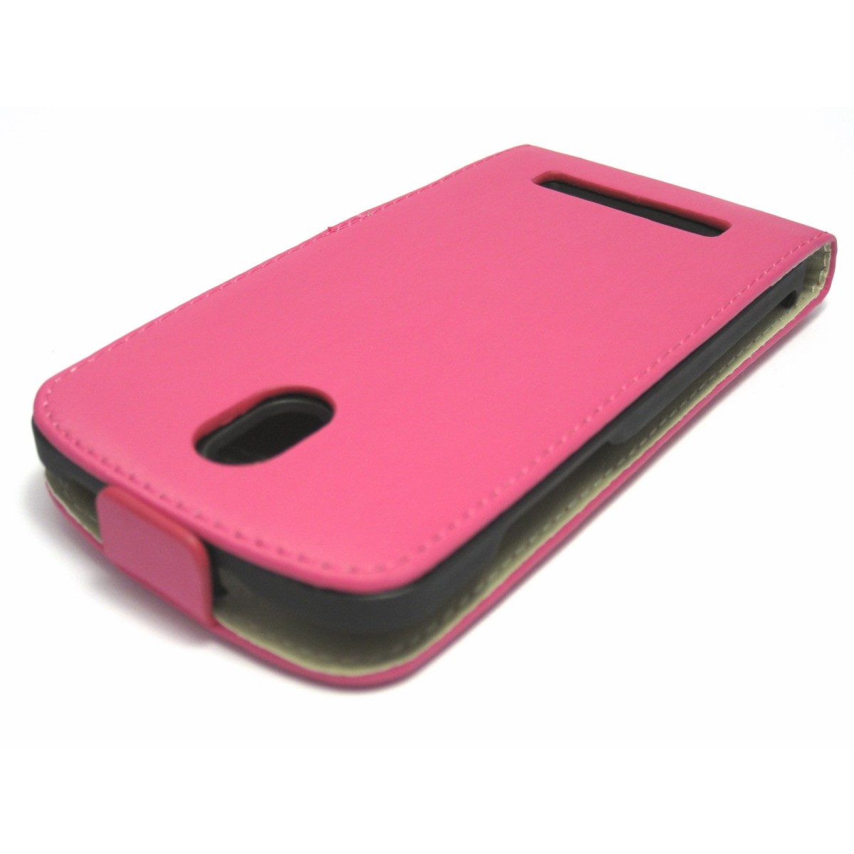 Funda protectora fabricada en material sintético de Alta Calidad en color rosa, con costuras en color rosa, muy elegante para su HTC Desire 500. Esta funda es del tipo ultra slim es decir ultra delgada, posee un cierre imantado, por lo que es mucho más comodo abrir y cerrar la solapa.