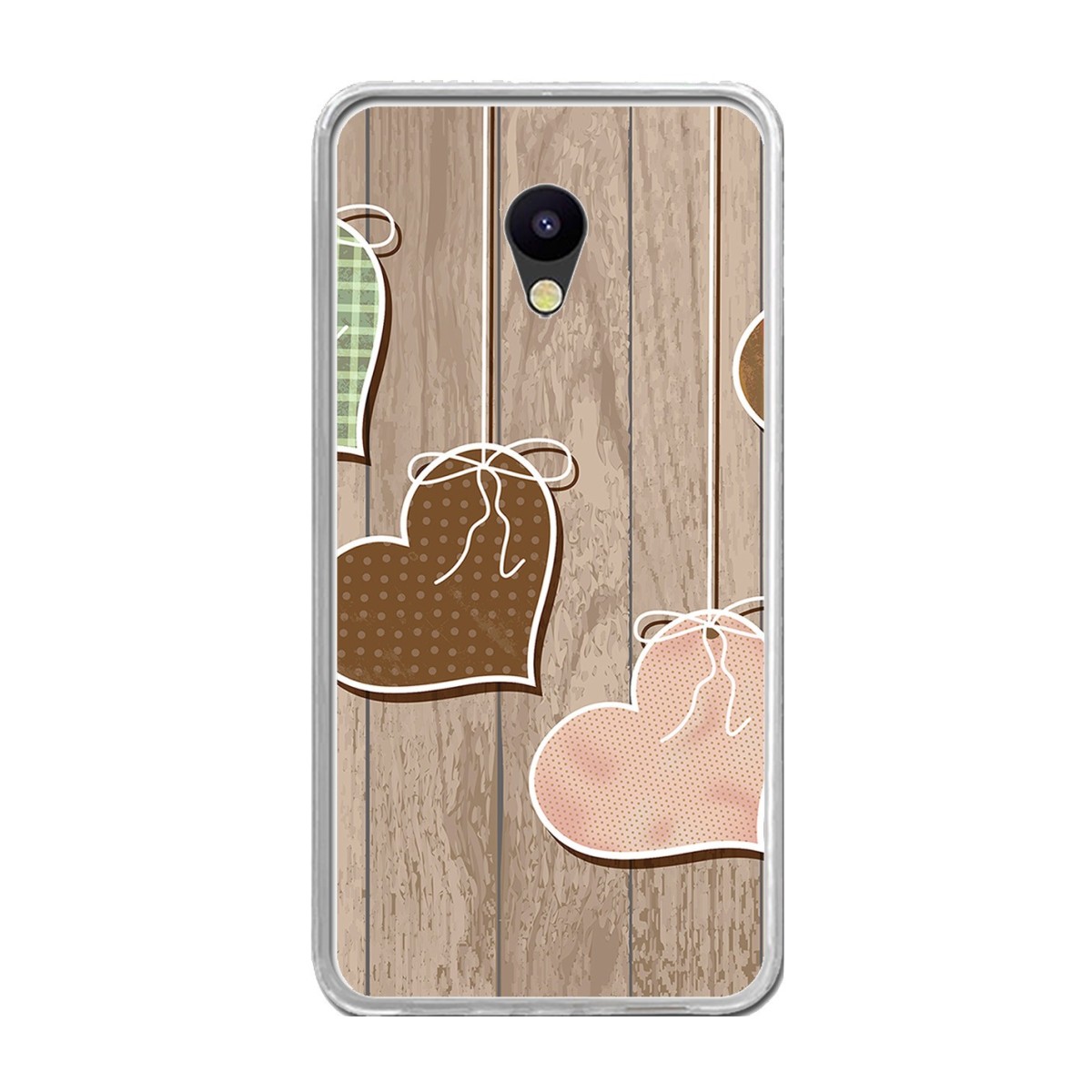 Funda Gel Tpu para Meizu M5 Note Diseño Corazones Madera Dibujos