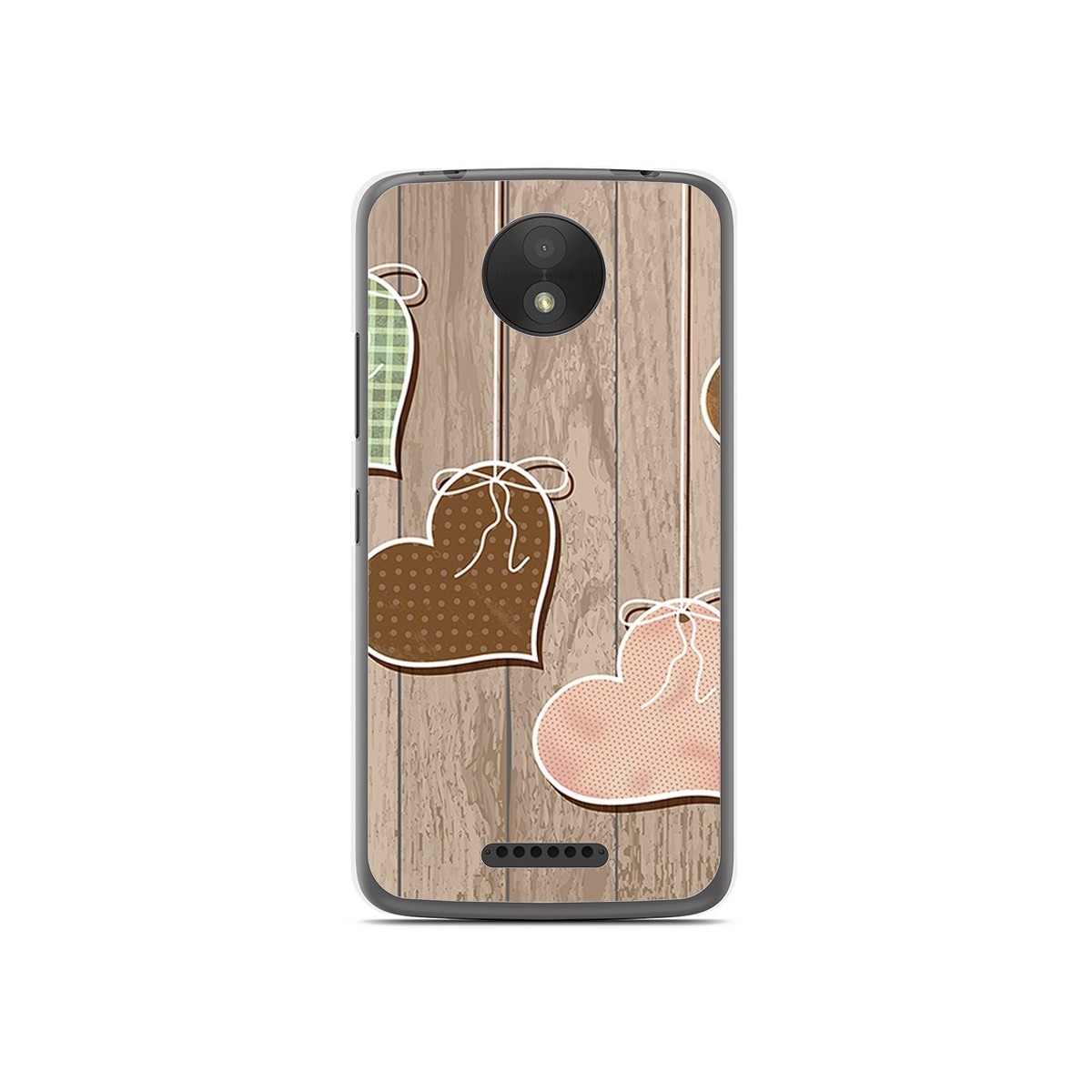 Funda Gel Tpu para Motorola Moto C Plus Diseño Corazones Madera Dibujos
