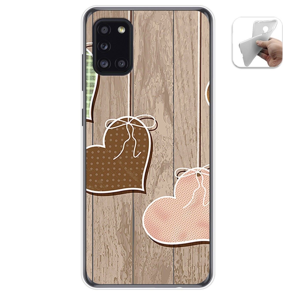 Funda Gel Tpu para Samsung Galaxy A31 diseño Corazones Madera Dibujos