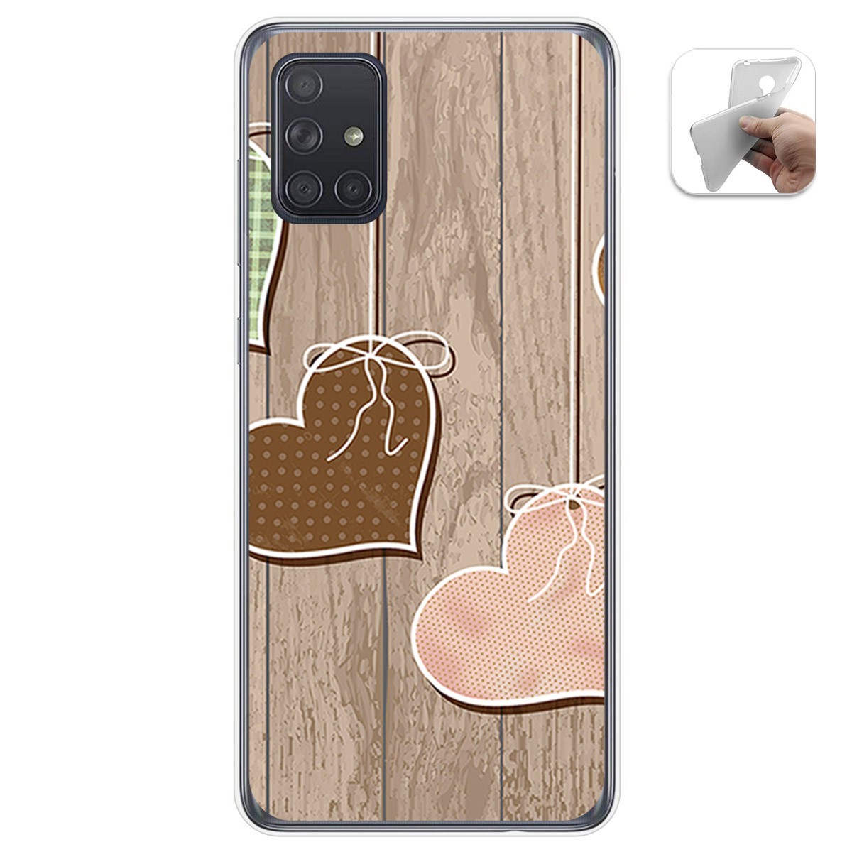 Funda Gel Tpu para Samsung Galaxy A71 5G diseño Corazones Madera Dibujos