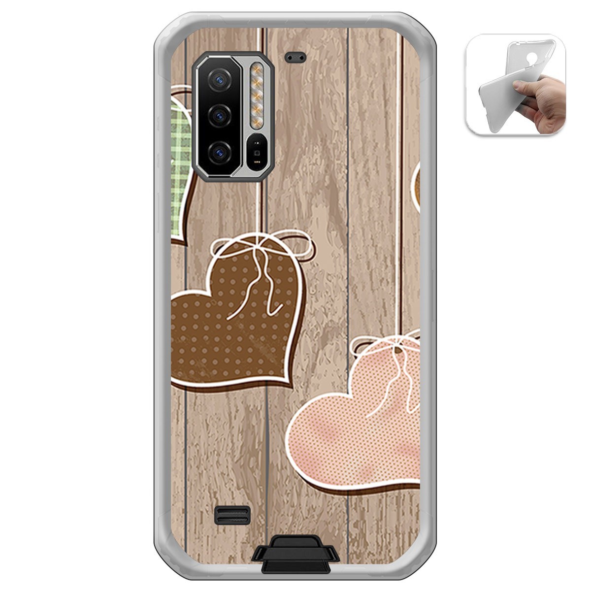 Funda Protectora personalizada dibujo Corazones Madera de gel TPU para Ulefone Armor 7.