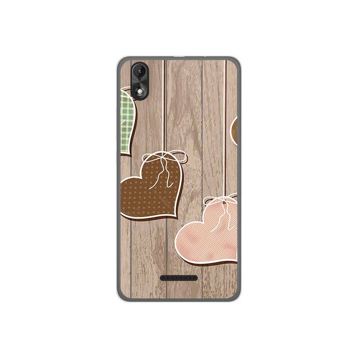 Funda Gel Tpu para Wiko Lenny4 Plus Diseño Corazones Madera Dibujos