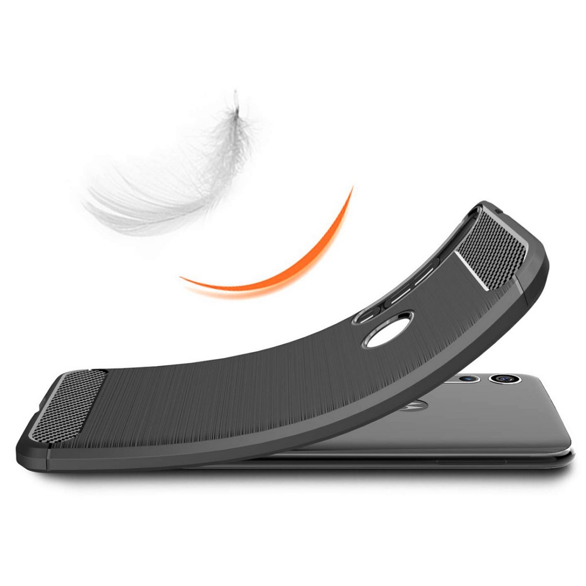 Funda Gel Tpu Tipo Carbon Negra para Huawei Motorola One Macro