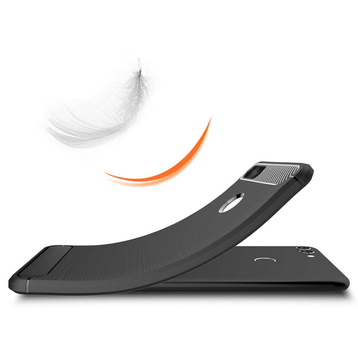 Funda Gel Tpu Tipo Carbon Negra para Huawei Y9 2018