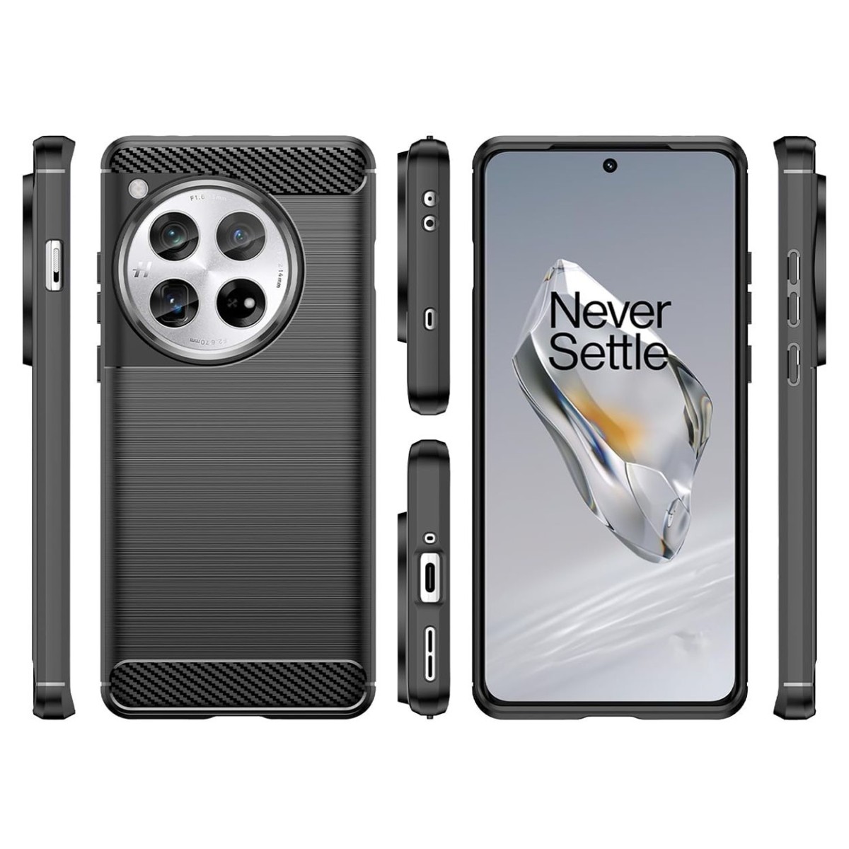 Funda Gel Tpu Tipo Carbon Negra para Oneplus 12R 5G