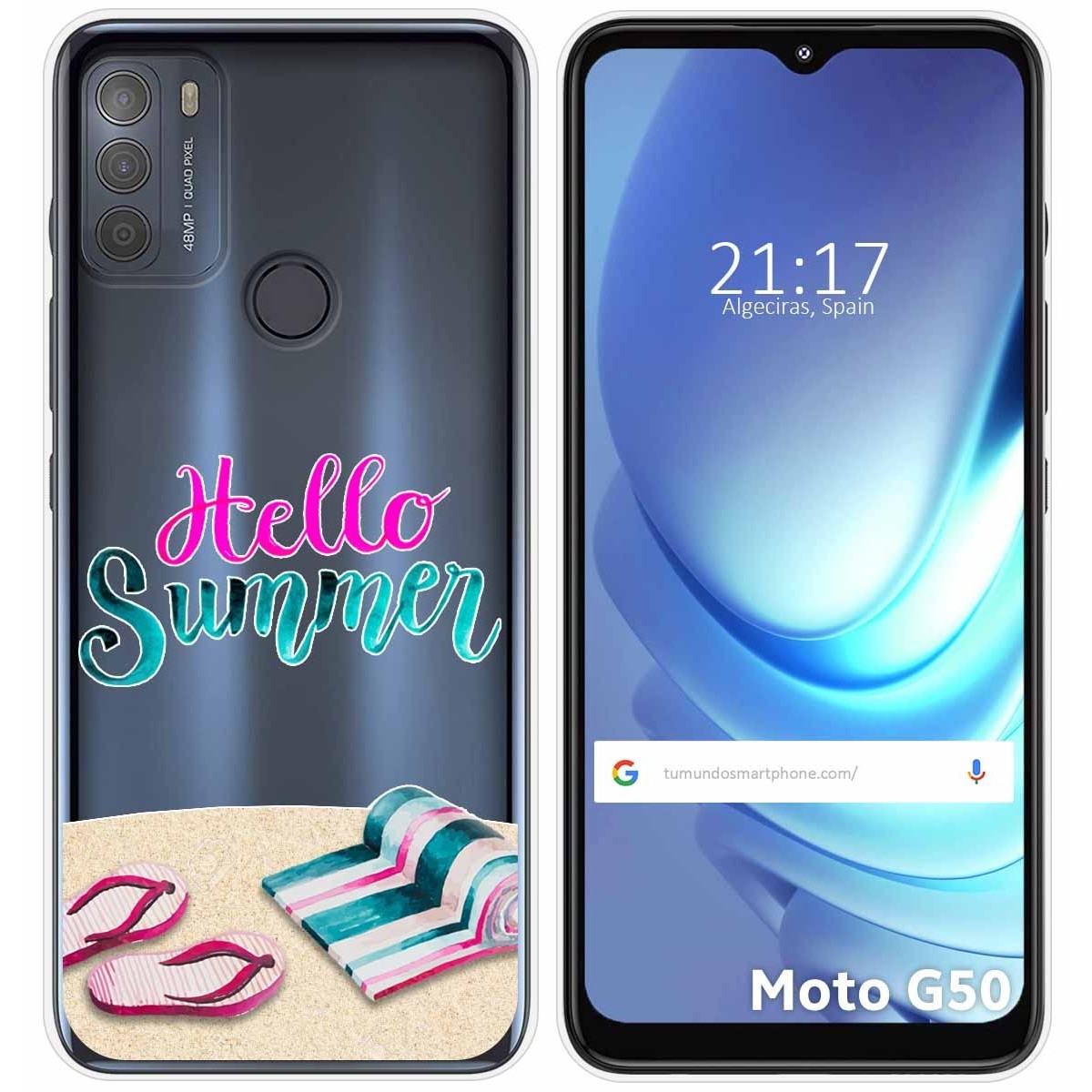 Funda Protectora personalizada dibujo Summer de gel TPU 100% transparente para Motorola Moto G50 5G.