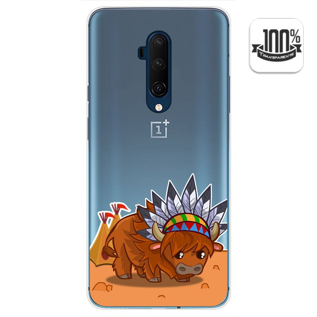 Funda Protectora personalizada dibujo Bufalo de gel TPU 100% transparente para Oneplus 7T Pro.