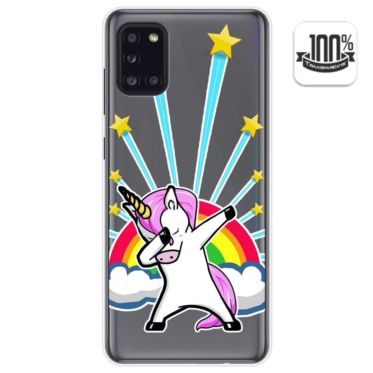 Funda Protectora personalizada dibujo Unicornio de gel TPU 100% transparente para Samsung Galaxy A31.
