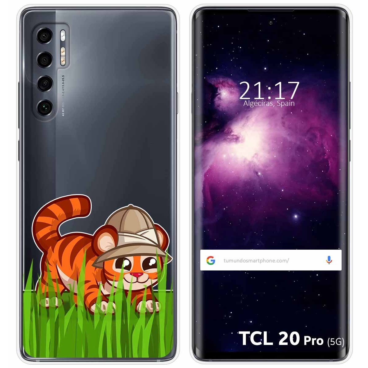 Funda Protectora personalizada dibujo Tigre de gel TPU 100% transparente para TCL 20 Pro 5G.