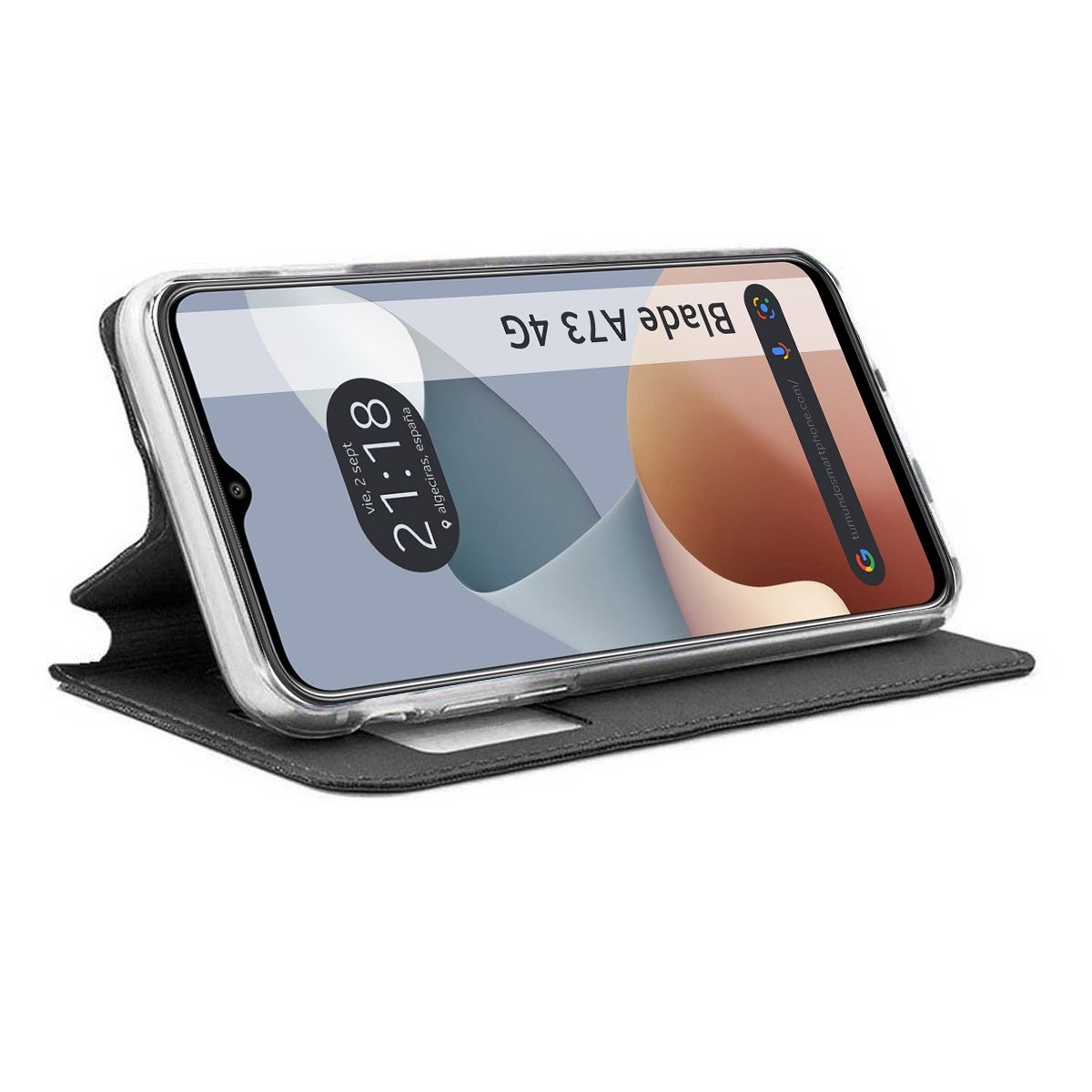 Funda Flip Cover Soporte con ventana, de apertura lateral tipo libro, color Negra para Zte Blade A73 4G.