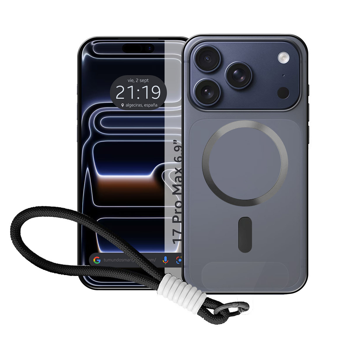Funda Magnética para Iphone 17 Pro Max (6.9) Compatible con MagSafe, Borde Negro y Correa