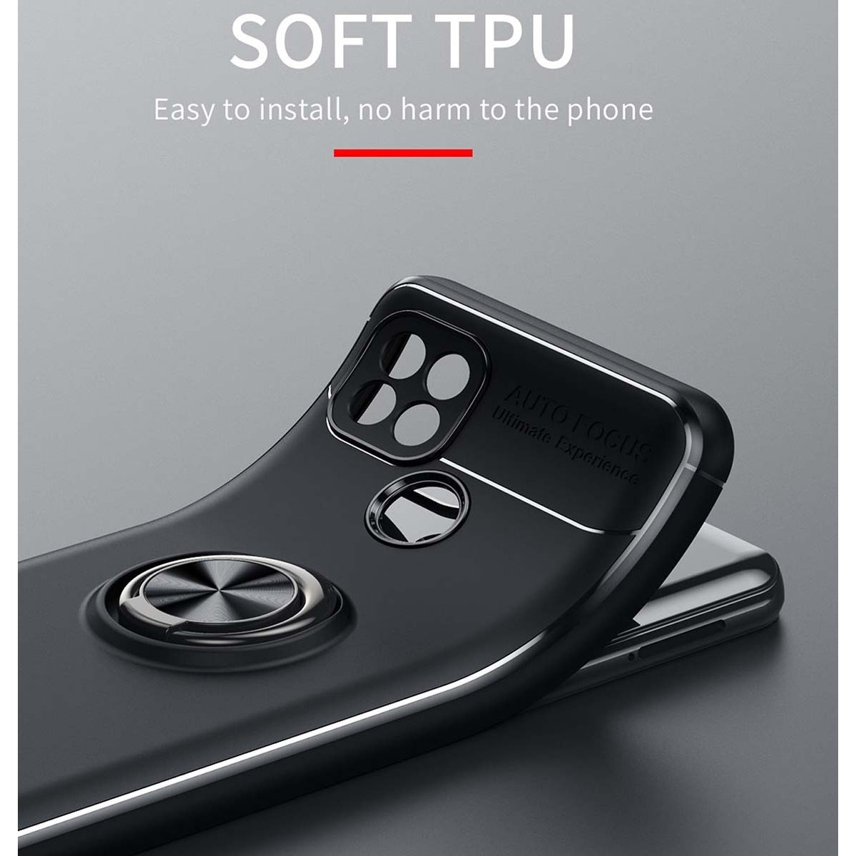 Funda Protectora de gel TPU con anillo integrado y magnética para soporte de coche color Azul para Realme C21.